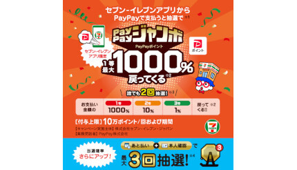 あわせて、2月15日~4月16日の期間には、「日本全国全額チャンス!超PayPayジャンボ」の実施を予定しており、セブン-イレブンでの買い物は「セブン-イレブンアプリで当たる!PayPayジャンボ」と「日本全国全額チャンス!超PayPayジャンボ」の両方が対象となる。