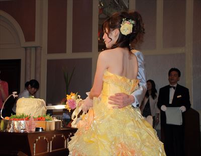 司会者の声とともに、扉に注目が集まる。ほとんどのゲストがカメラを用意。