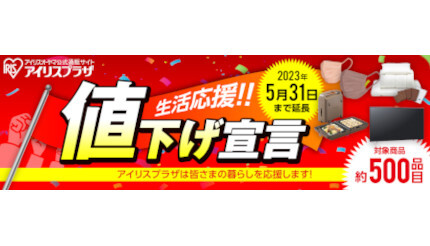 アイリスオーヤマは、食品をはじめ多くの生活用品の価格高騰が続く中で、日常生活を支える商品を安心して手に取りやすい価格で提供したいという想いを込めて2022年9月から公式通販サイト「アイリスプラザ」にて実施している「生活応援宣言」を、5月31日まで延長する。