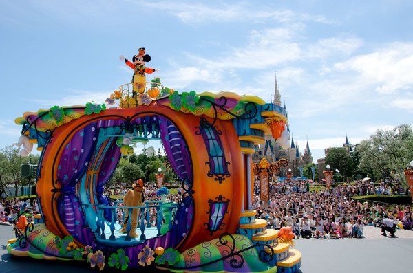 ハロウィーンのパレードが一新されました。昨年までは「オバケ、オバケ、オバケ~」とホラー&ダーティなイメージでしたが、今年は30周年“ザ・ハピネス・イヤー”ということもあってか、収穫祭が全面に押し出された明るくにぎやかなパレードになっています。