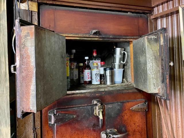 【菊屋】 木製冷蔵庫は常連客が私物を入れるロッカーとして活躍中