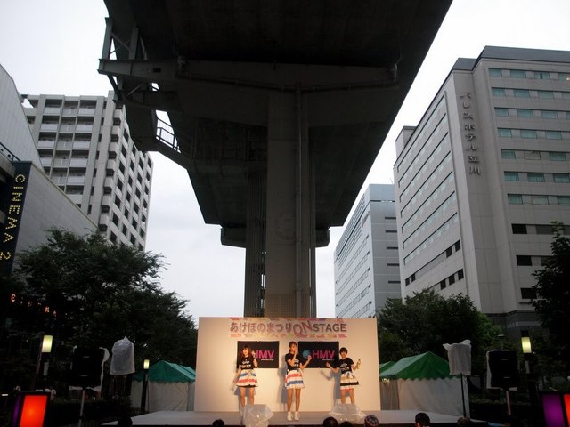 立川駅のほど近くで、「あけぼの祭り」という地域のお祭りが開催されていまして、そこに登場したんですよ。しかもステージが多摩モノレールの下!
