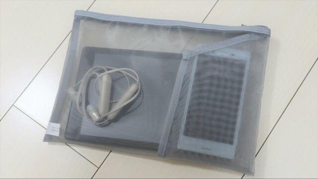 無印良品のナイロンメッシュ素材のポーチやペンケースは、文房具やガジェット収納などに便利。ハリのある素材感でバッグの中でもくしゃくしゃにならず、中身が見えやすい優れものです。