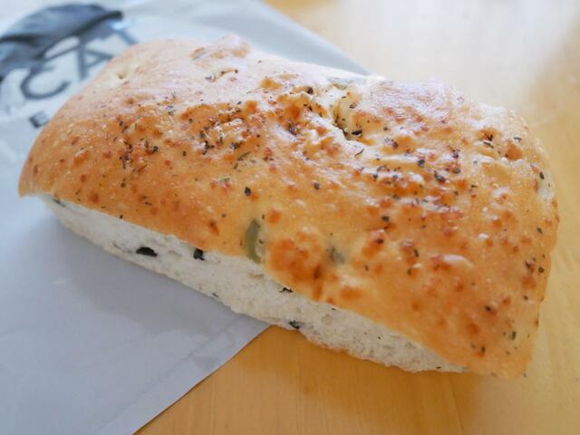 今回あえて推すオリーブは、軽やかな口あたりの刻んだグリーンオリーブとブラックオリーブが練り込まれていて、風味豊かなフォカッチャ。