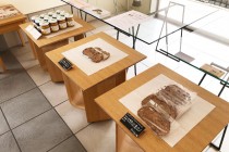 入って正面にレジとサンドイッチ系のショーケースがあり、三方をパンが囲んでいます。多くの商品に試食があるので、好みの味を確かめてから購入できるのが嬉しかったです。(ここで食べ過ぎないよう注意!!)