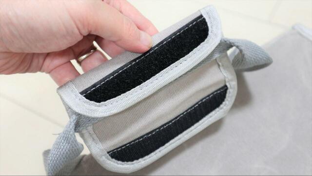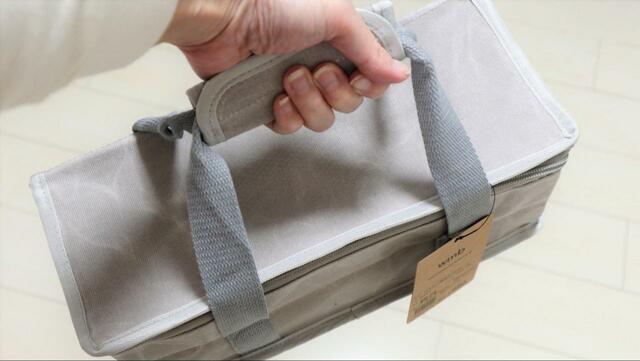 持ち手の部分に面ファスナーで接着するカバーが付いており、重いものを運ぶ時に便利です。
