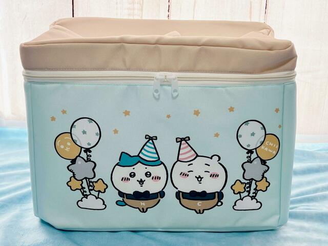 ちいかわとハチワレがお誕生日をお祝いされているイラストがキュートな収納ボックス。