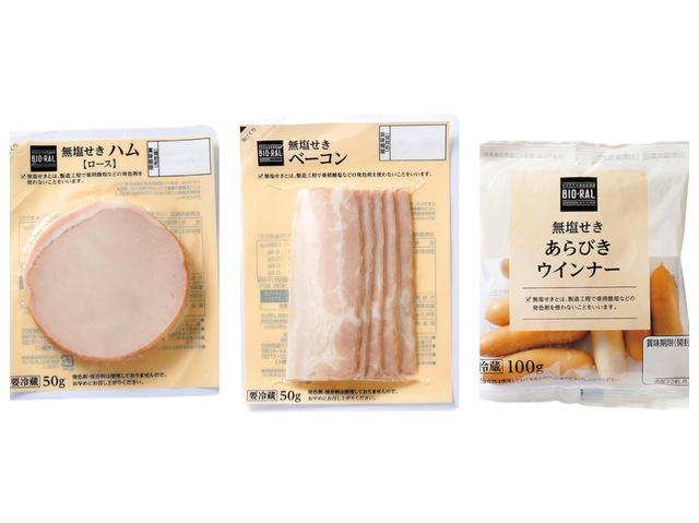 製造工程で亜硝酸塩などの発色剤を使わない 「無塩せき」製法で作られたハム・ベーコン・ウインナー。素材本来の色合いで、旨味やジューシーさを味わえます。