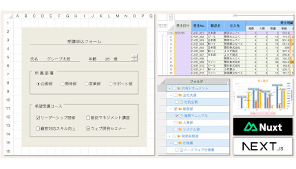 今回リリースされる「SpreadJS V16J」では、ボタンやチェックボックスなどをはじめとする9種類のExcelライクなフォームコントロールを追加し、Excel入出力機能を活用することでフォームコントロールを配置したワークシートをExcelに出力したり、インポートしたExcelファイルに含まれるフォームコントロールをSpreadJS上で利用したりできる。