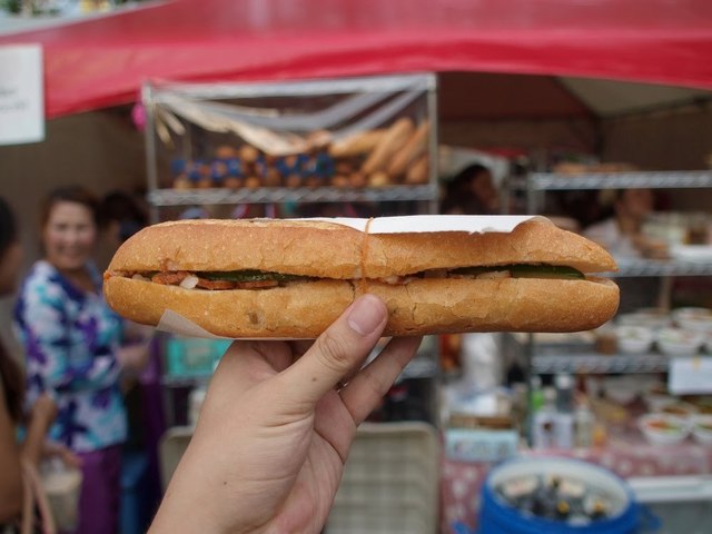 いろいろ買いたくなってしまったんですが、今回はベトナム風サンドイッチのバインミーをチョイス。ベトナムってフランスの植民地だったんで、バゲットがすごく美味しいんですよ。そのバゲットでベトナムらしい具を挟んで…。ああ、記事を書いている今も、思い出してお腹が減ってきちゃいます…。