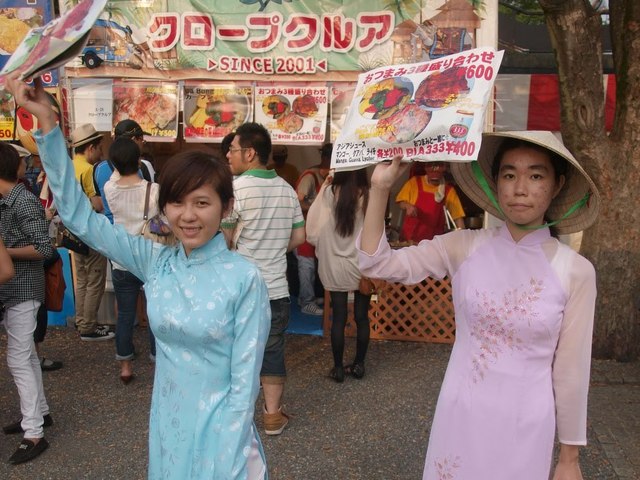 そして、ベトフェスと言って忘れてならないのが会場を彩るアオザイ姿の女性たち!いやー、アオザイって、本当にいいものですね…。もともとお綺麗な女性方が、さらにお美しく輝きます!皆さまステキな笑顔、ありがとうございます。