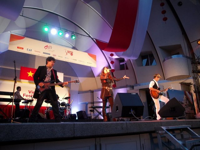 会場に夕暮れが訪れると、いよいよステージではLOVE VIETNAM SHOWと題してバンドやシンガーさんが総出演!