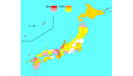 国立感染症研究所が2月10日に更新したインフルエンザの流行マップによると、2023年第5週(1月30日~2月5日)の患者報告数は6万2583人と6万人を超えた。前週(1月23~29日)と比べて1万人以上増えた形だ。定点当たりの報告数は12.66(前週は10.36)となった。