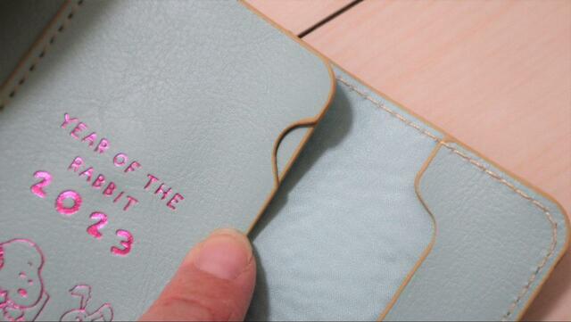 カード入れの部分には、うさぎと一緒に遊ぶスヌーピーのイラストが。