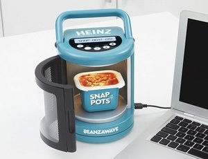 ケチャップなどで有名な会社「HEINZ」が2009年に制作したもの。当時で世界最小のレンジとなっており、小さなパイやスープ、冷めたお惣菜あどであれば1分ほどで温めることができるとか。