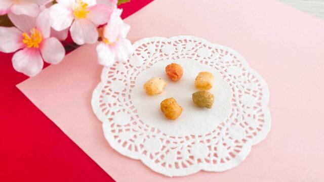 一粒の大きさは直径5mmほどの丸いかわいらしいあられです。