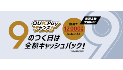 電子マネー「QUICKPay」の利用で当たる「9のつく日は全額キャッシュバック!」キャンペーンは、今年は当選人数倍増