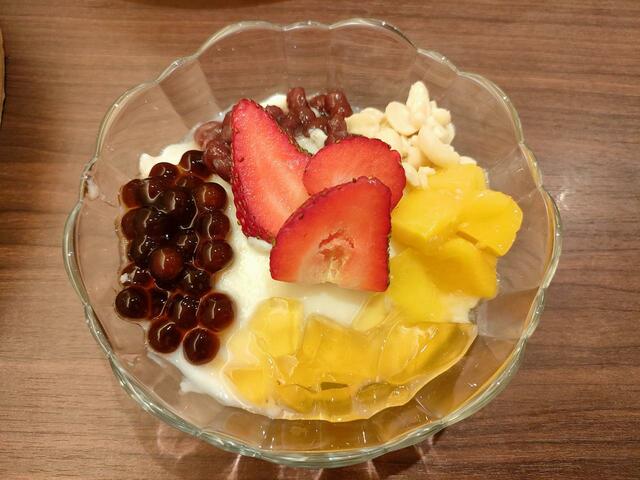 「マンゴー×イチゴ×タピオカ」を「豆花」の上に乗せていただくもの。「豆花」の味わいがとたんに変わるスッキリメニューで、フルーツ王国・台湾ならではの味・見た目を楽しむことができます。