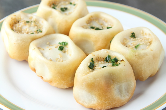噛み締めると熱い肉汁がジュワっと飛び出る焼き小籠包。