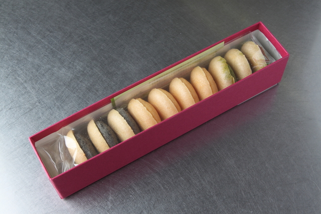 元町にある香炉庵といえばどら焼きが人気だが、日持ちして小分けできる焼もなかも隠れた逸品。もなかの皮にプレーン、抹茶、ごまのサブレ生地がのる。