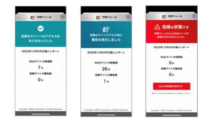 BBソフトサービス(BBSS)は、ネット詐欺対策ソフト「詐欺ウォール」でiOS版向けに利用者が危険サイトへのアクセス件数がわかる新機能を提供開始した。Windows版ではすでに提供済みで、Android版は3月中に機能提供を予定している。