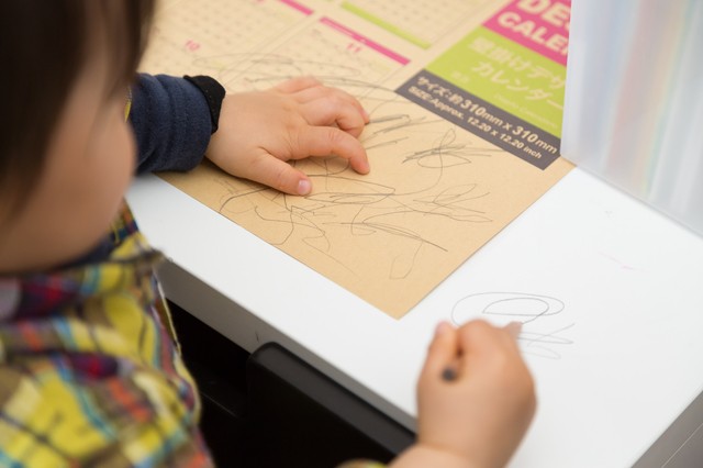 2歳くらいの子にクレヨンを渡したら、画用紙をはみ出してテーブルにまで描いてしまうことってありますよね。小さな画用紙よりもテーブル一杯に描きたいのです。