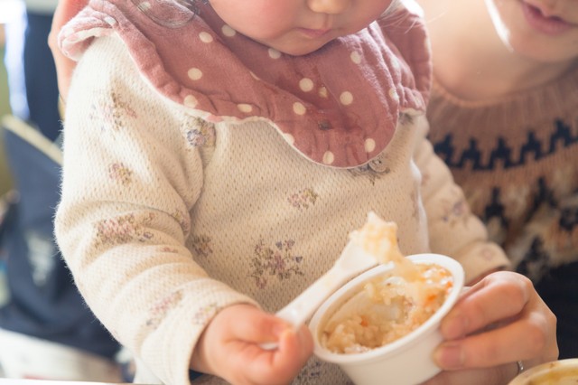 こんなときは、テーブルの下に新聞紙を敷いておくとそれを捨てるだけで済みます。「掃除が大変だわ」とならず、ママのストレスも減ります。年齢を重ねればそのうち零さずに食べられるようになりますから、そうなるまでは見た目は悪くとも新聞紙に頼りましょう。