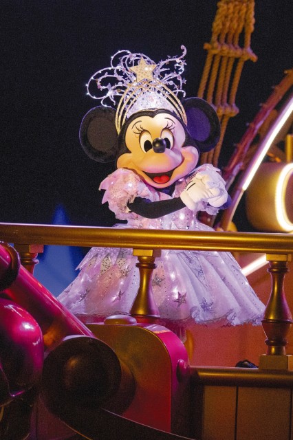 光の魔法とともに、水玉模様もベルトの部分もキラキラになったミニーを拝んでみてください。