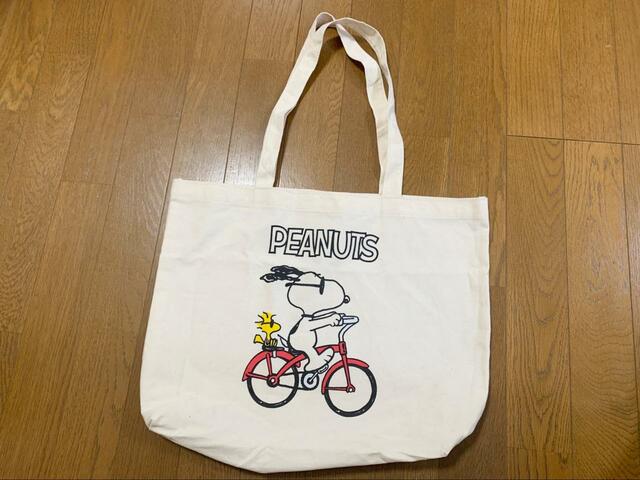 まず使い心地やデザインをレビューするのは、自転車に乗ったスヌーピーのイラストが描かれた軽量トートバッグ。