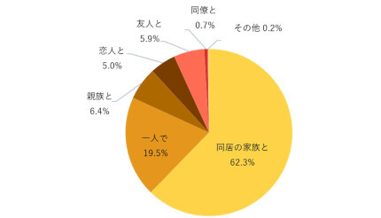 おでんを一緒に食べたい人は「同居の家族」が最多で「1人で」が2割でそれに続く