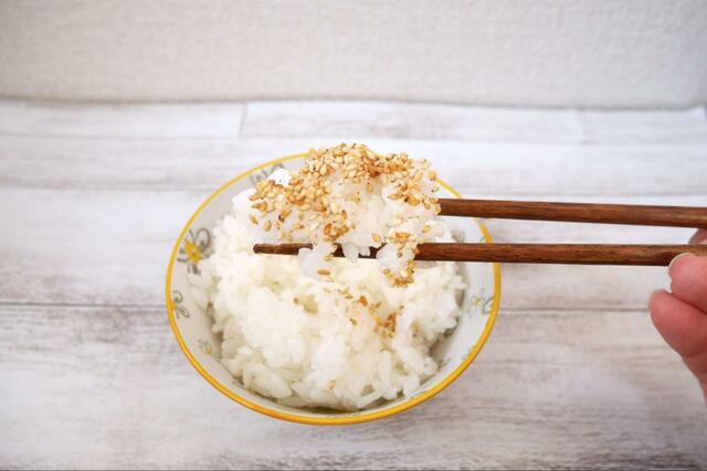 早速ごはんに乗せて食べてみると、ごまの香ばしさとにんにくのパンチが合わさってクセになるおいしさ。