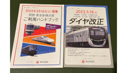 東急電鉄は、東横線・目黒線・田園都市線・大井町線・池上線・東急多摩川線にて実施するダイヤ改正に関するポイントをまとめた冊子『2023年3月18日(土)ダイヤ改正』(PDF形式・8ページ)と、相鉄・東急新横浜線の情報をまとめた『相鉄・東急新横浜線 ご利用ハンドブック』(PDF形式・20ページ)を同社のウェブサイトに掲載するとともに、東急線の各駅構内の東急インフォメーションポケットなどで無料配布を開始した。