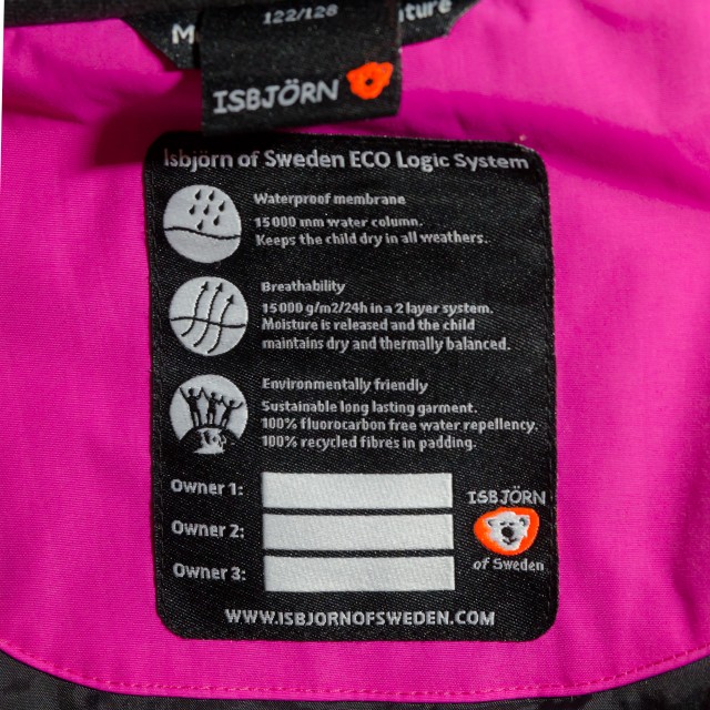 「ISBJÖRN(イスビョン)」のスノーウェアには、Owner 1、Owner 2、Owner 3、と、所有する子どもの名前を書く欄が、3人分ある