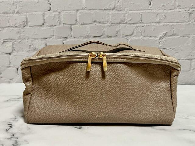 化粧水サイズのボトルなども楽々入る横幅で、マチもたっぷりあるポーチです。