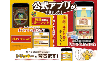 鳥貴族アプリでは店舗予約をはじめ、アプリ内で利用が可能なトリキポイントでギフト券が当たるガチャや、食べた串の本数でオリジナルキャラクター「トリッキー」を育てるコンテンツなど、鳥貴族をさらに楽しくお得に利用できる、さまざまなコンテンツを提供していく。