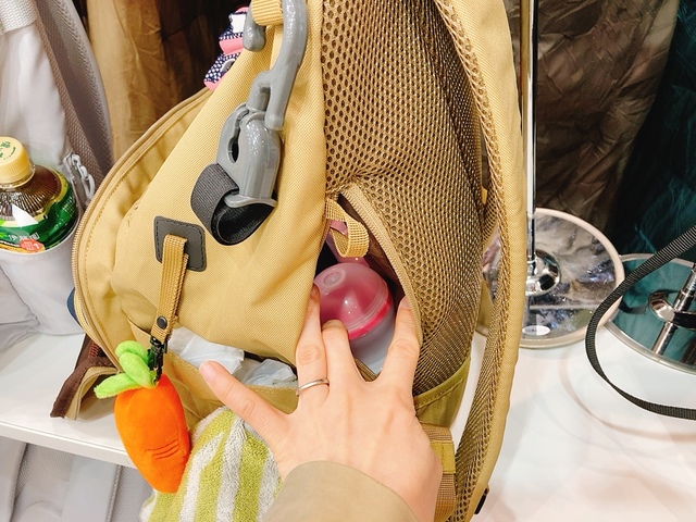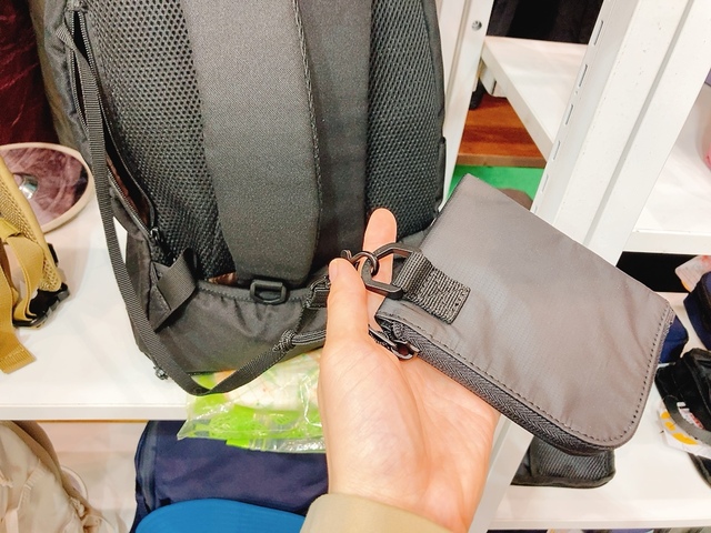 床に置いた時、リュックの紐が足に引っかかってしまうと危ないので、意外に活躍するポケットです。