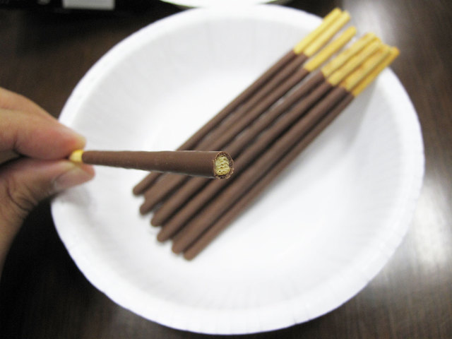 食べてみると、食感が普通のポッキーよりも固め。プレッツェルの部分がパイ状になっているため、とても歯ごたえがあります。この辺りが大人を感じさせてくれます。