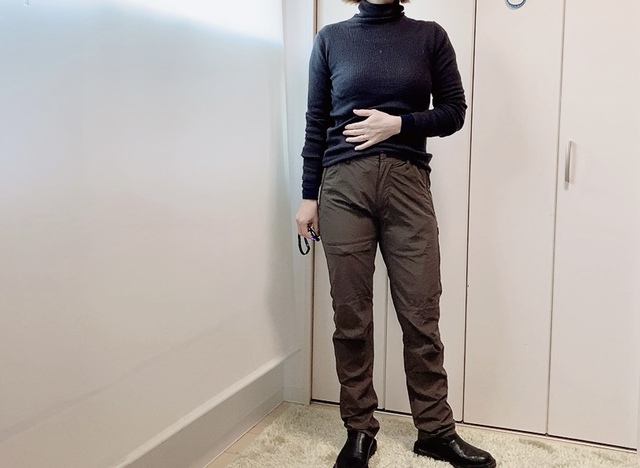 黒いジャケットと合わせるとクールな印象になりました。スリム見えするので、どんなアイテムと合わせてもスタイリッシュになりますよ。