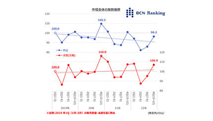2022年4月以降の値上げの影響がデジタル家電でも出始めたのか――。全国の主要家電量販店・ネットショップからデジタル家電などの実売データを収集・集計している「BCNランキング」でデジタル家電市場の四半期ごとの推移を追ったところ、新型コロナ前と比較して販売金額は微増であるのに対し、販売数量は徐々に減ってきていることが明らかになった。特にリアル店舗の販売数量の落ち込みが激しく、4月以降のリアル店舗の回復がカギを握る。