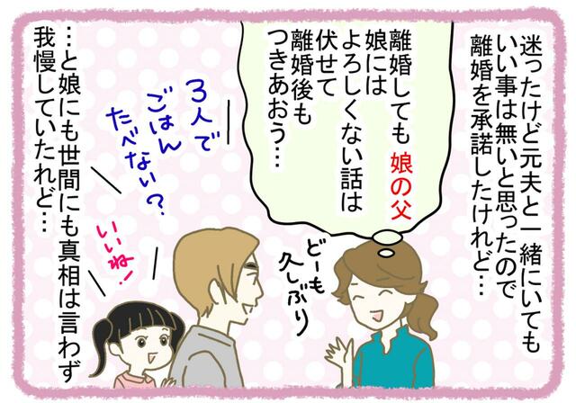 それでも娘には父親だから、といろいろ飲み込んでつきあっていたけど、娘のための約束も破られ、娘も傷つけた人にいい顔する必要はなくなりました。