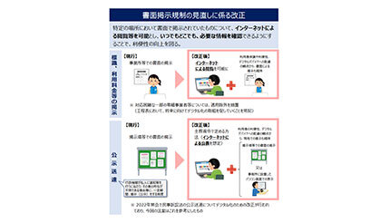 もう一つ、デジタル規制改革推進の一括法案では、22年6月にデジタル臨時調査会で策定した「デジタル原則に照らした規制の一括見直しプラン」を踏まえ、オンライン手続き・インターネット公表を前提に、書面掲示規制、フロッピーディスク等記録媒体に係る規制といった、いわゆるアナログ規制を見直す。対象となるアナログ規制は約1万条項。
