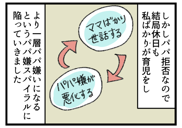 パパを嫌がるから息子のお世話は全て私になり、余計にパパ嫌になる…そんな悪循環が生まれていました。