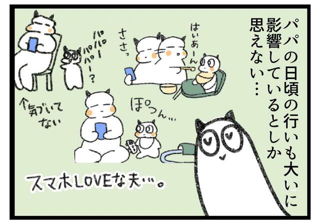 たまにしかお世話しないのに、お世話の時もスマホ…スマホをいじっていて、子供が声をかけても全然気づかない…。