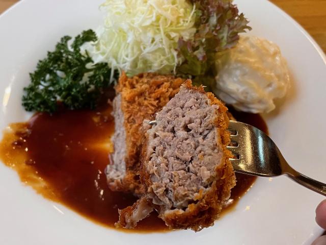レストランも肉屋もメンチカツは豚ひき肉で作る店が多いが、ランチョンでは合い挽きを使っているのかもしれない。