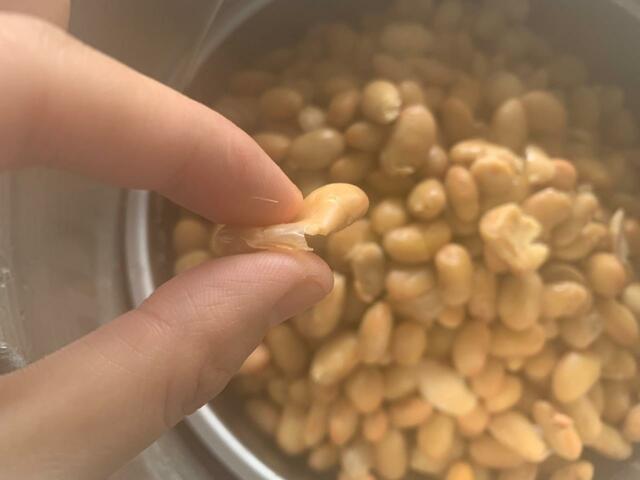 大豆は2倍以上の大きさになるので、膨らんでも水から出ないくらいの大きいボウルや鍋で水もどしするのがおすすめです。