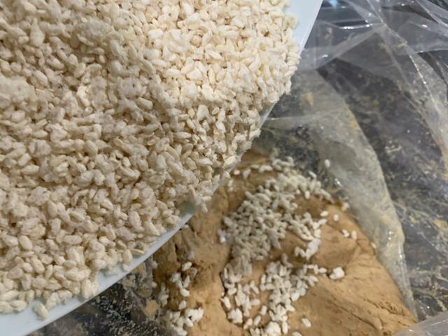 袋の上から作業すれば手も汚れず、散らばらないので子どもと一緒にできます。