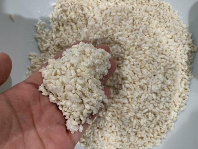 麹に分量の塩を入れ、手でまんべんなく混ぜましょう。