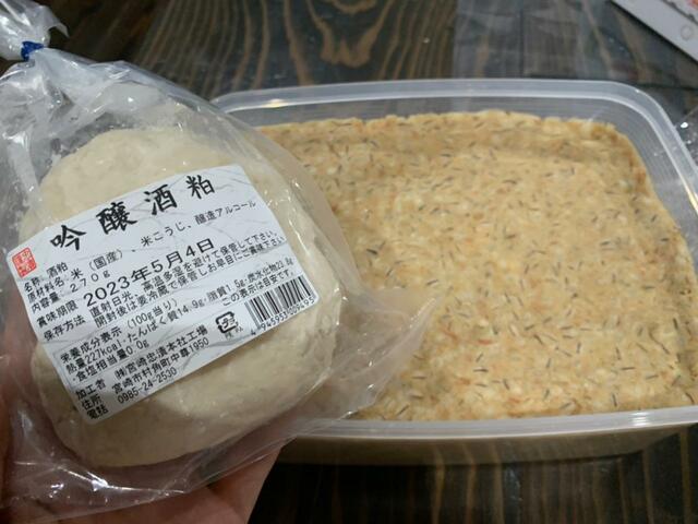 味噌ができると、表面の酒粕もみそのような色になります。表面部分は別に置いておいて、粕汁や石狩鍋に使いましょう。