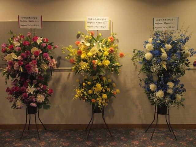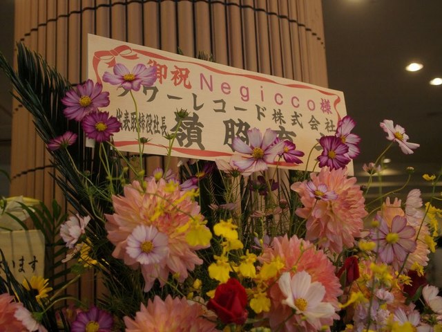 たくさんのお祝いのお花も来ていて、所属するT-Palette Recordsからタワレコ嶺脇社長から、最近コラボの多いビームスの社長さんからも来てましたし、同じく新潟発のアイドル、RYUTistからも。さらにはメンバーそれぞれのイメージカラーでファンの皆さんからお花が。ネギファンの皆さん、なかなか粋なことしますね~。