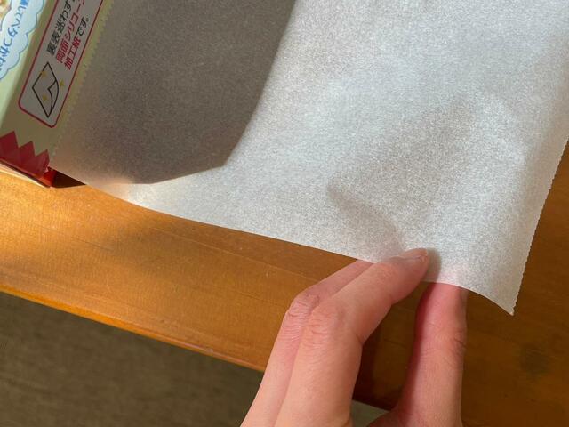 下準備として、クッキングシートを10cm×10cmの大きさにカットしました。